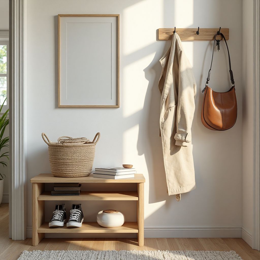 - Gantungan Dinding Multifungsi: Pasang gantungan untuk tas, jaket, atau payung.